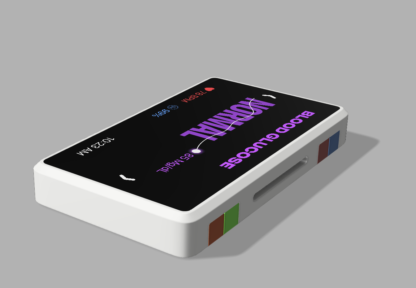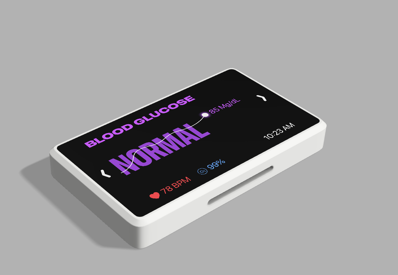 Conceptual device developed as a part of my Senior Biochemistry Thesis: "Noninvasive Biosensing: Opportunities for a Multi-Analyte Wearable." Designed to sense blood glucose, electrolytes, and small molecules in eccrine sweat.