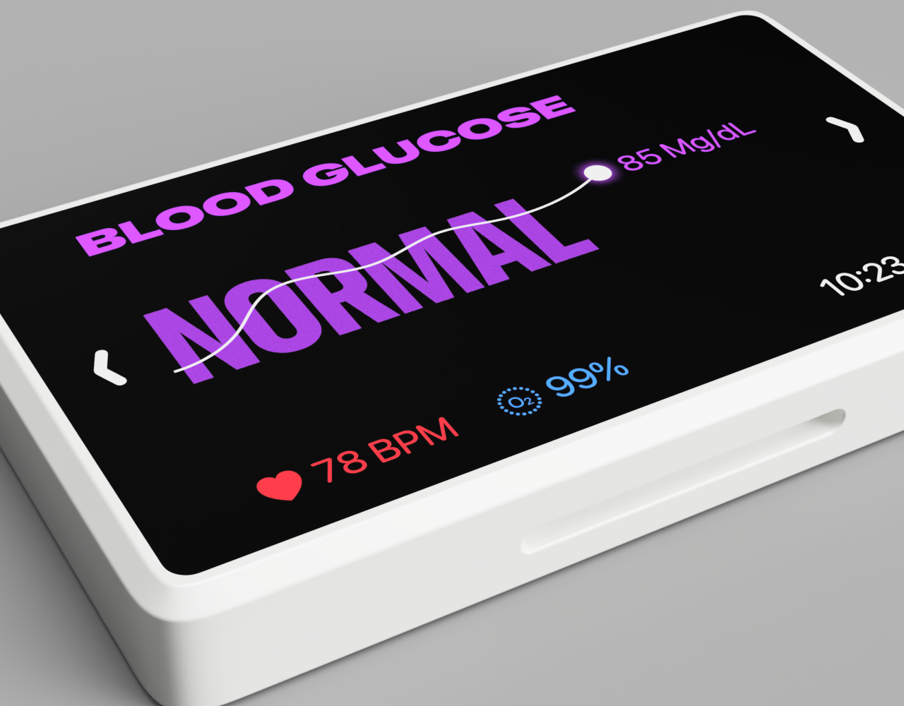 Conceptual device developed as a part of my Senior Biochemistry Thesis: "Noninvasive Biosensing: Opportunities for a Multi-Analyte Wearable." Designed to sense blood glucose, electrolytes, and small molecules in eccrine sweat.